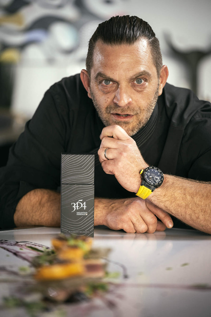Tief im Berg in einem Eisstollen und in Fässern aus Limousine-Eiche reift er in aller Ruhe heran, unser 3454 Beyond Balsamico. Mindestens 10 Jahre dauert es, bis dieses rare und heiss begehrte Genussmittel den Weg in die Küche findet.