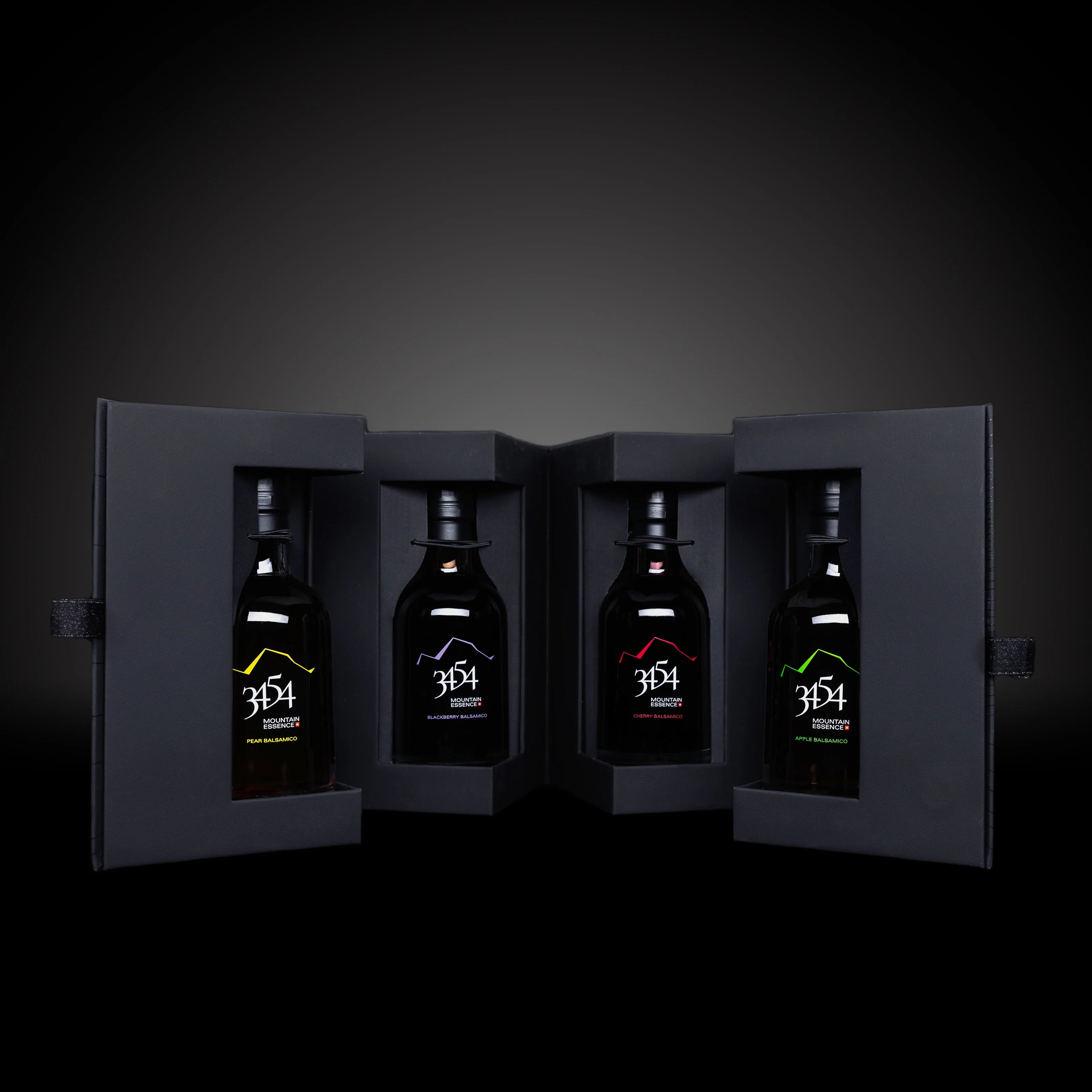 3454 Mountain Essence contient des fruits suisses soigneusement sélectionnés et mûris à la perfection, complétés par un soupçon de notre premium Beyond Balsamico. Qu'il s'agisse de pommes, d'abricots, de poires, de myrtilles, de framboises, de Mûre, de cerises, de coings ou de prunes, ces balsamiques naturels sont le premier choix des gourmets et des chefs primés.